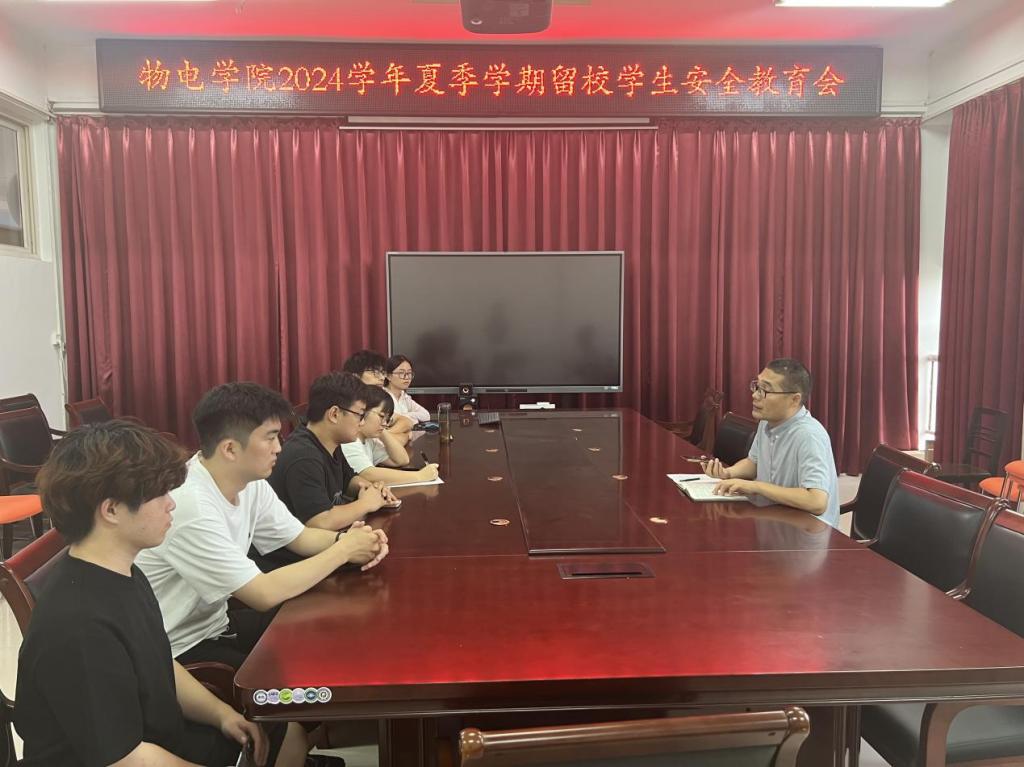 为强化留校员工的安全意识和自我保护能力,公司于7月12日在2号实验楼3楼会议室召开夏季学期安全教育会议。本次会议由公司副书记刘自范主持,学工办马亚琼老师和全体留校同学参加。