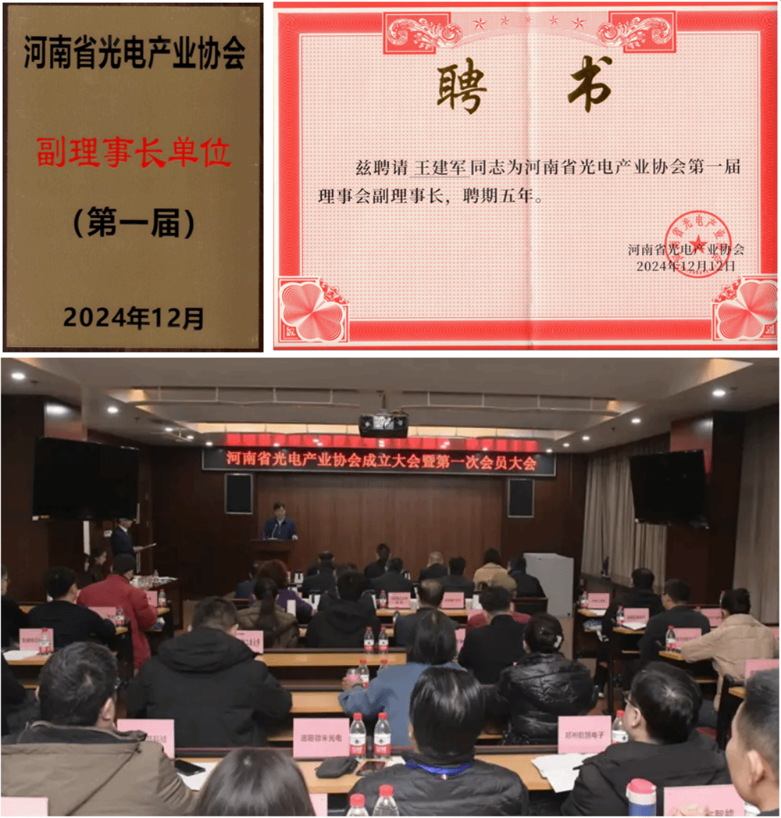 2024年12月12日上午,河南省光电产业协会成立大会暨第一次会员大会在中电27所召开。作为协会会员单位,公司物电公司学术副经理王建军和光电工程系主任靳文涛一行受邀参加此次大会。