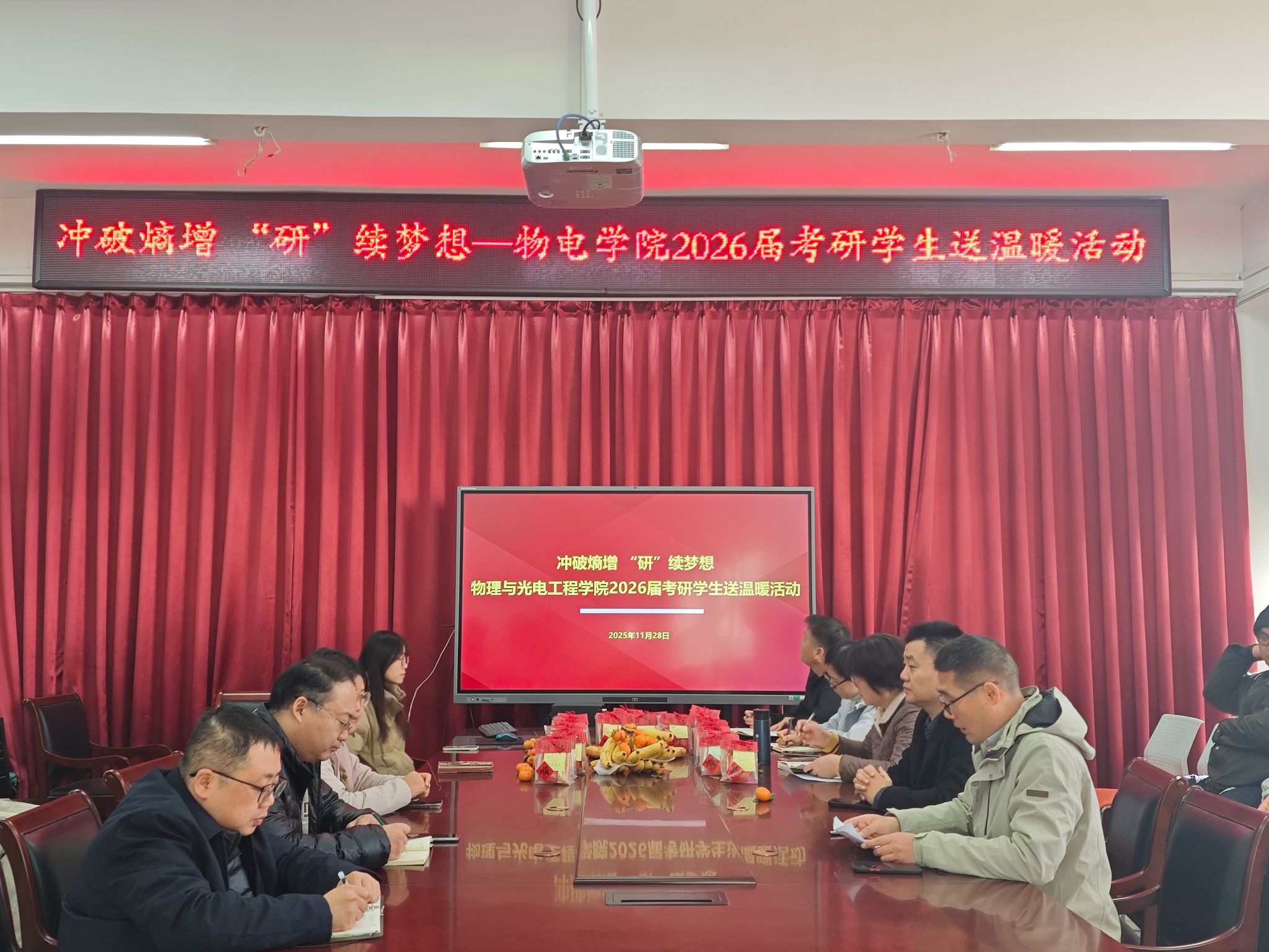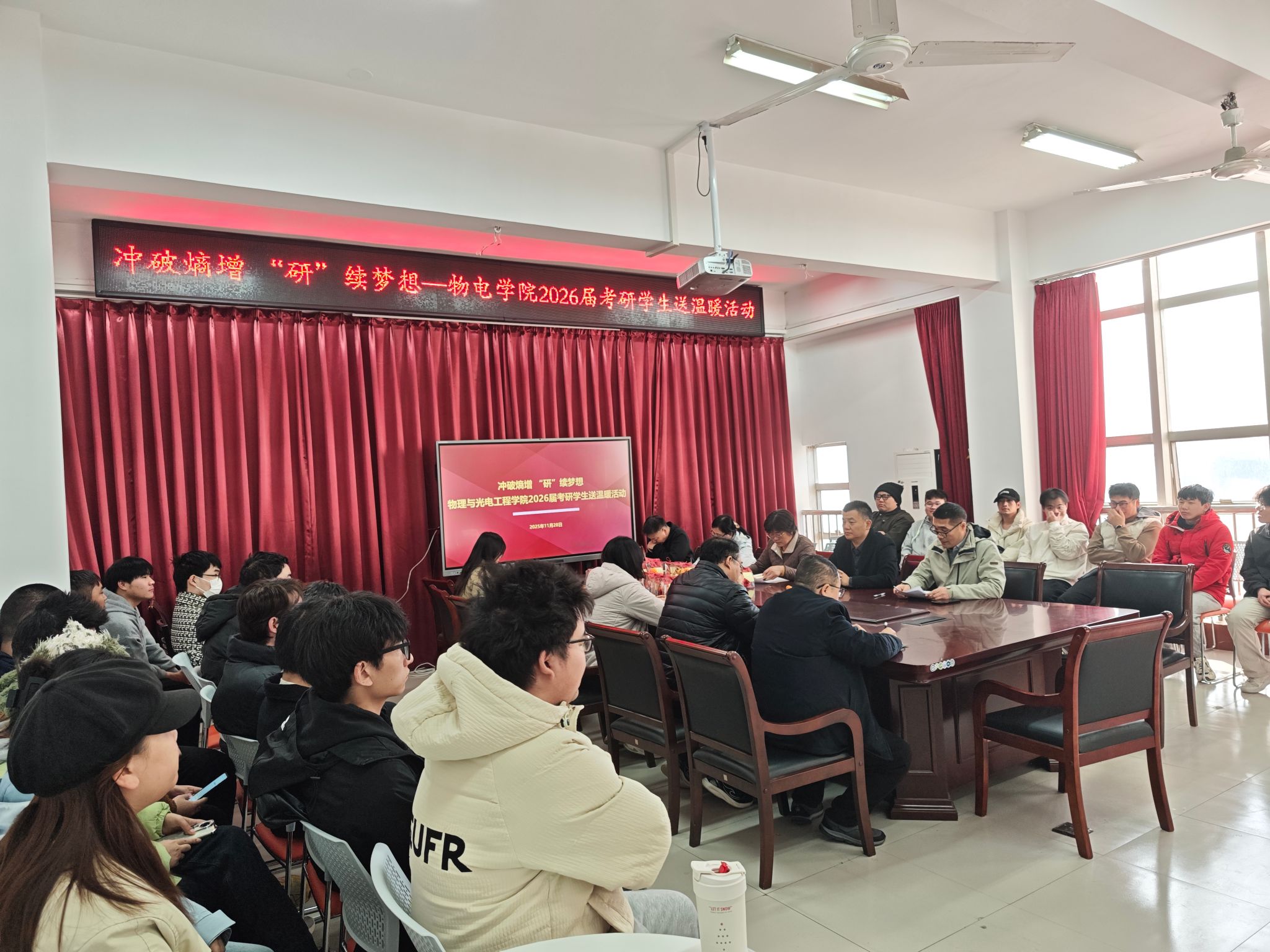 2026年全国硕士研究生招生考试日益临近,为舒缓考研学子备考压力、坚定冲刺信心。11月28日,BSports举办“冲破熵增,‘研’续梦想”考研送温暖活动。公司领导、教师代表、学工办人员及22级考研员工代表共同参与,为备考学子送上公司关怀与精心准备的考研助力礼包,活动由党总支副书记刘自范主持。