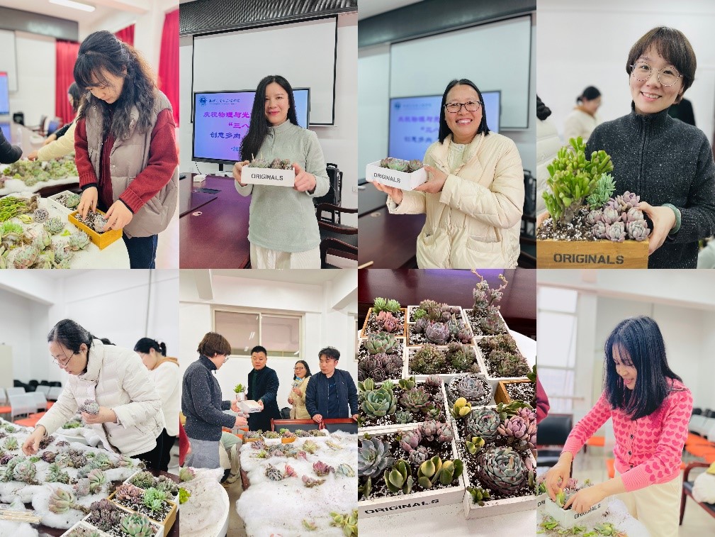 随后,公司分工会组织女教工参加多肉Diy种植活动。女教工们变身妙手花匠,小心翼翼地找准位置、扎稳根、埋好土、植多肉,在动手的过程中展示出丰富的创造力,打造出各具特色的“纯手工盆景”。