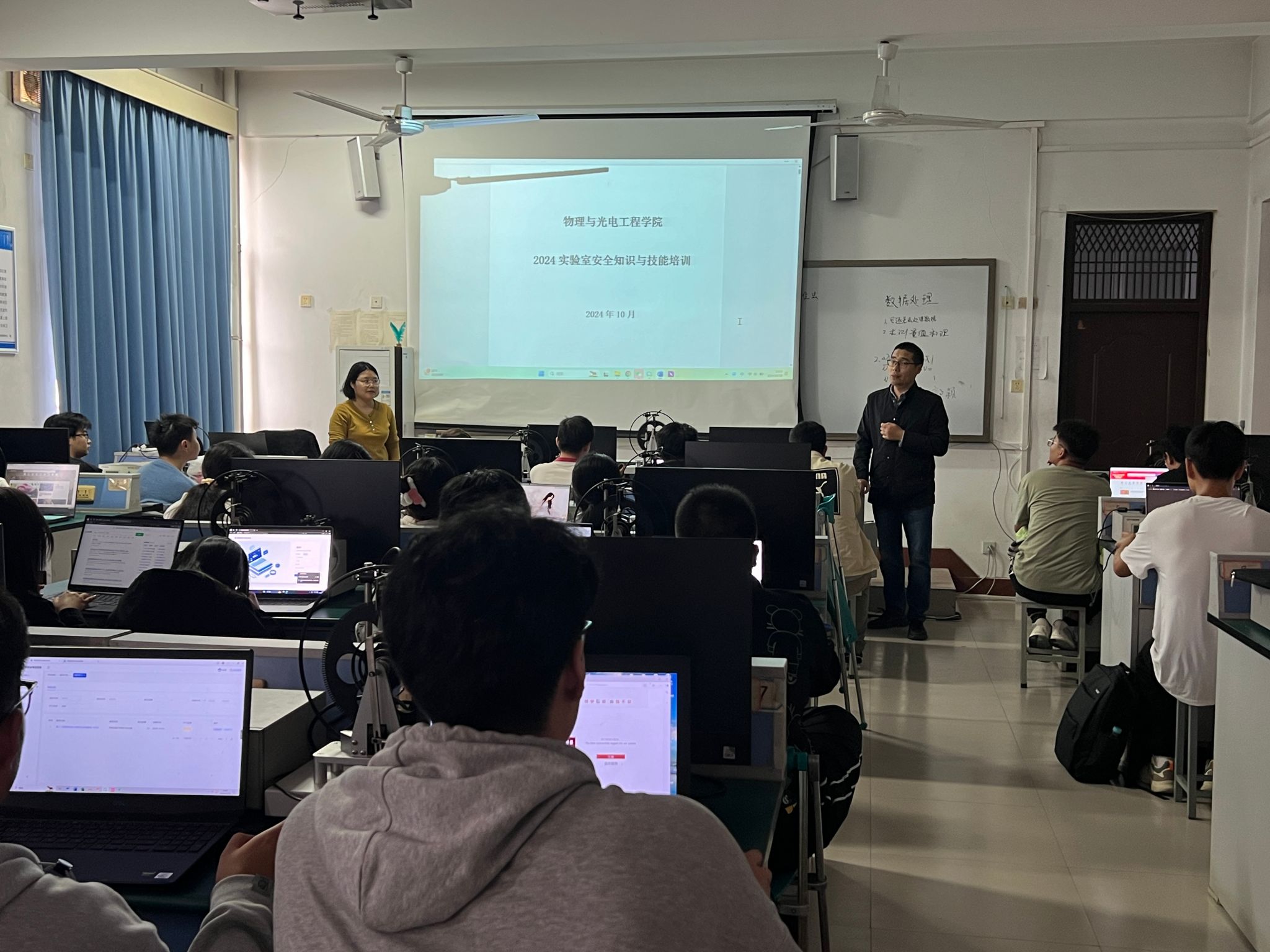 为了进一步增强员工对实验室安全的认识,并为即将到来的实验室安全竞赛做好充分准备,10月18日中午,公司在2号实验楼335实验室举行了实验室安全知识与技能培训会,会议由党总支副书记刘自范主持,物理实验中心副主任袁佩玲为主讲人,物电公司本科生、研究生代表参与。