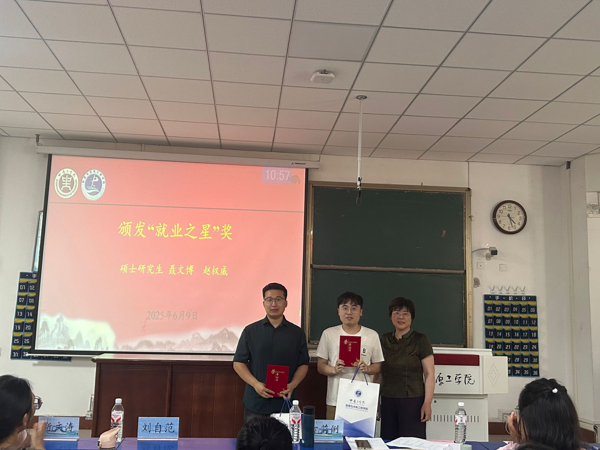 公司执行经理方莉俐、副经理郭鹏、副经理郑源以及学术副经理王建军分别为荣获“考研之星”和“就业之星”称号的硕士研究生及本科毕业生颁发奖状及奖品。获奖学子依次登台受奖,全场报以热烈掌声,表达了对他们拼搏进取精神的充分肯定与祝贺。“考研之星”代表梁现玉同学与“就业之星”代表程梦园同学先后分享了备考或求职经验。2022级员工代表刘心愿表达了向榜样学习、追求卓越的决心。学业导师代表张雪华勉励同学们以榜样为力量实现理想。
